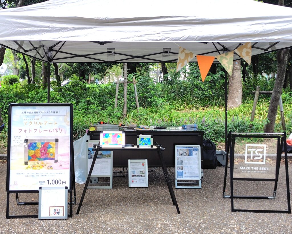 大阪市西区にある靱公園で、本と街と人を繋ぐきっかけづくりのイベント「えほんpicnic」に出展しました!たくさんのお子様に「アクリルアート&フォトフレーム作り」を体験していただきました!